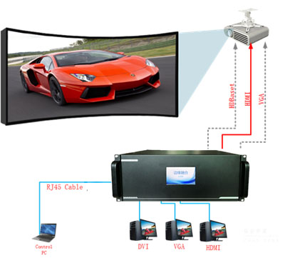 標(biāo)清融合處理器HX-CC210D輸出支持高達(dá)1440×900高清輸出,支持適合4:3、16:9長寬比投影機(jī)的畫面輸出。